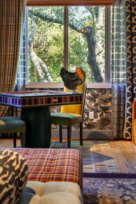 Obviously, we matched our boldest hen to the boldest room. Loud patterns and layered prints? Right up her alley. This confident queen strutted straight in like she owned the place – and honestly, she kind of did.