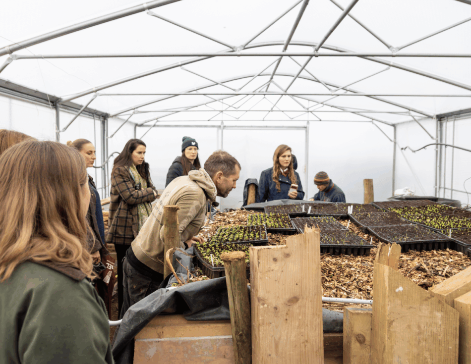 After lunch, guests headed out on a guided walk around the FarmED land. While the weather wasn’t entirely on our side that day, it was great to see their chickens, soil and systems working together in real life.