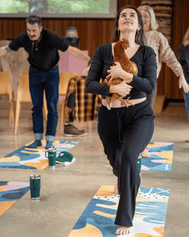 Mats on the floor, plenty of laughter to break the ice and some very curious hens pecking about. Hayley Brown called it “a great way to kick off the day being surrounded by chickens,”many of our attendees admitted it’s something they’re tempted to bring into everyday life with their own chickens.